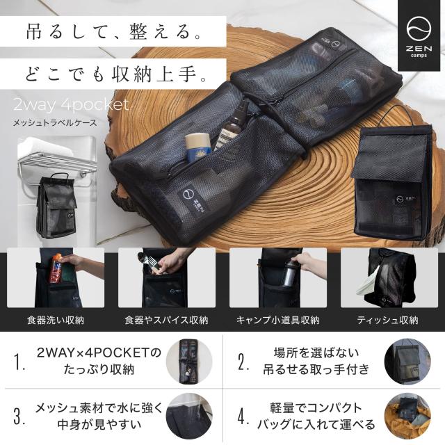 ZEN Camps メッシュトラベルバッグ トラベルポーチ 吊り下げ ポーチ 旅行 化粧ポーチ キャンプ 洗面用具