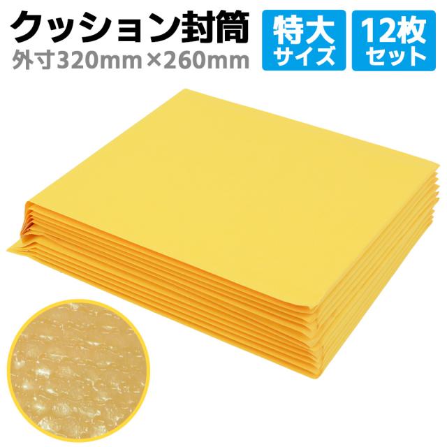 クッション封筒 12枚 特大 A4対応 外寸: 約32x26cm 内寸: 約32x24cm テープ付 大 XLサイズ ゆうパケット ぷちぷち封筒 梱包【送料無料】資材 プチプチ 封筒梱包材 郵便発送業務用 梱包資材 梱包気泡袋緩衝材 封かんシール付き