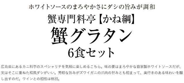 蟹専門料亭「かね綱」 蟹グラタン(6食セット) 広島 西条 料亭の味 レンジ調理 簡単グルメ ギフト 贈答用 お取り寄せ