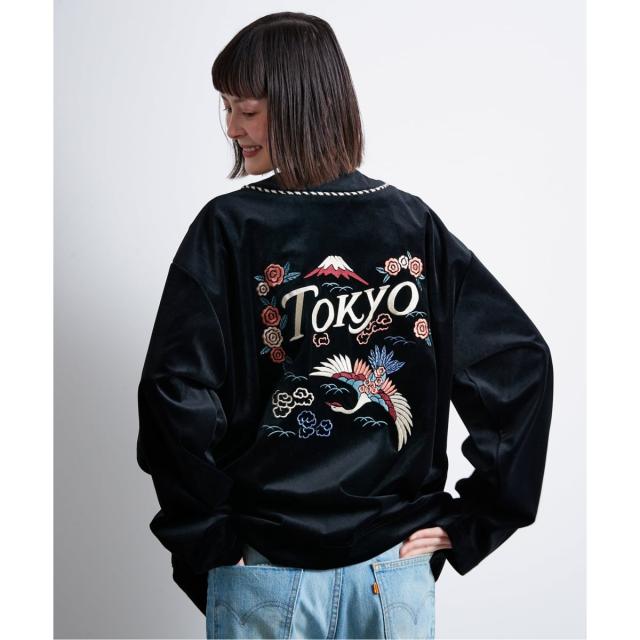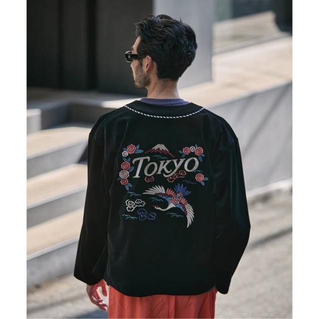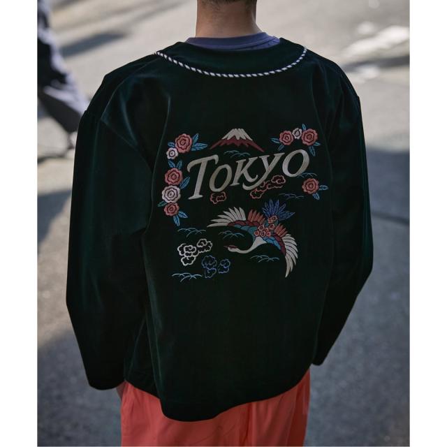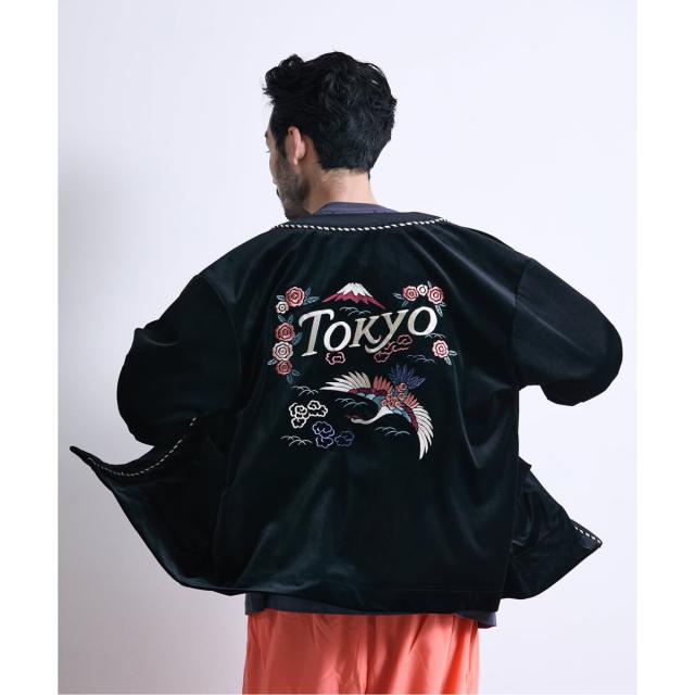 日本の首都「TOKYO」にインスパイアされた、独創的なベロア素材のカーディガン型ジャケットです。