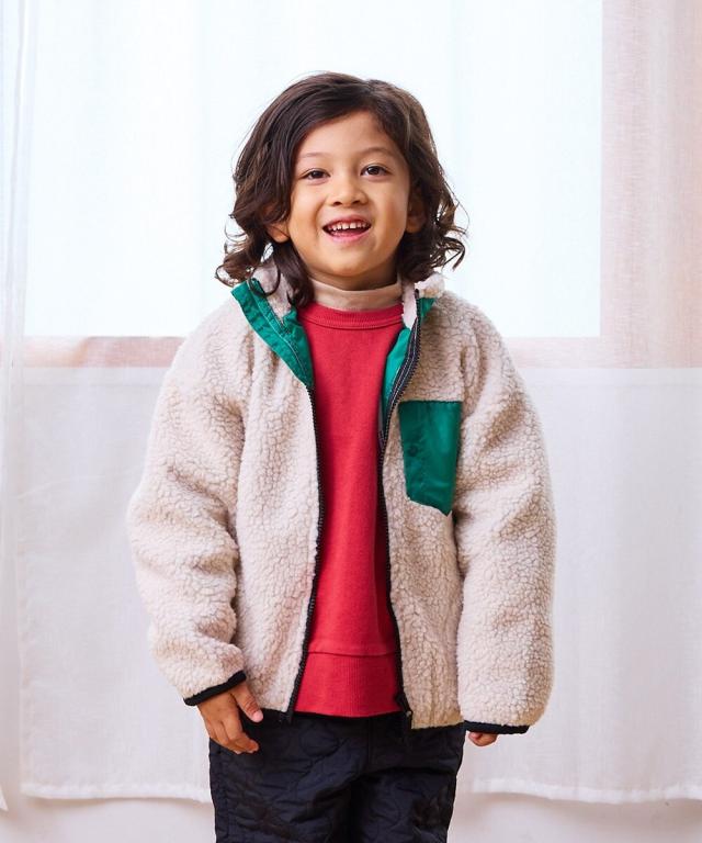 なんといっても、配色が目を引くボアアウター!