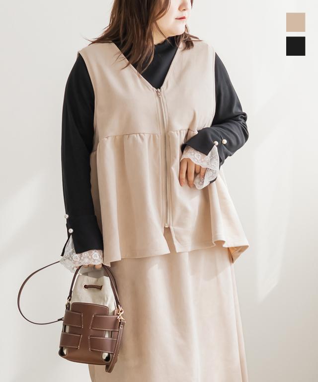 大きいサイズ/レディース/3L/4L/5L/カットソースエードフロントジップペプラムベスト