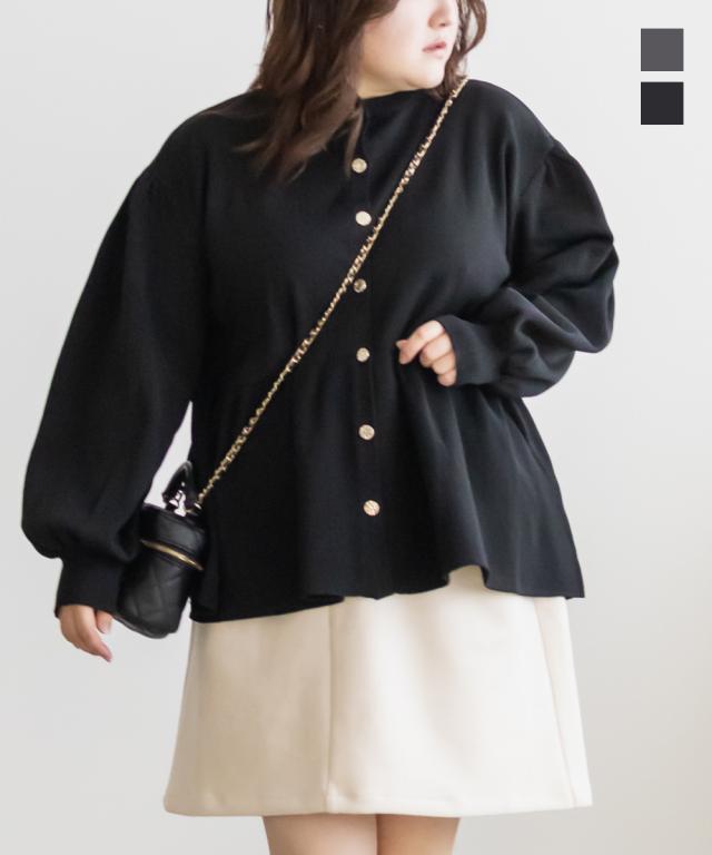大きいサイズ/レディース/3L/4L/5L/ゴールド調ボタンスポンジニットペプラムカーディガン