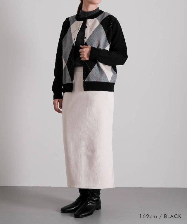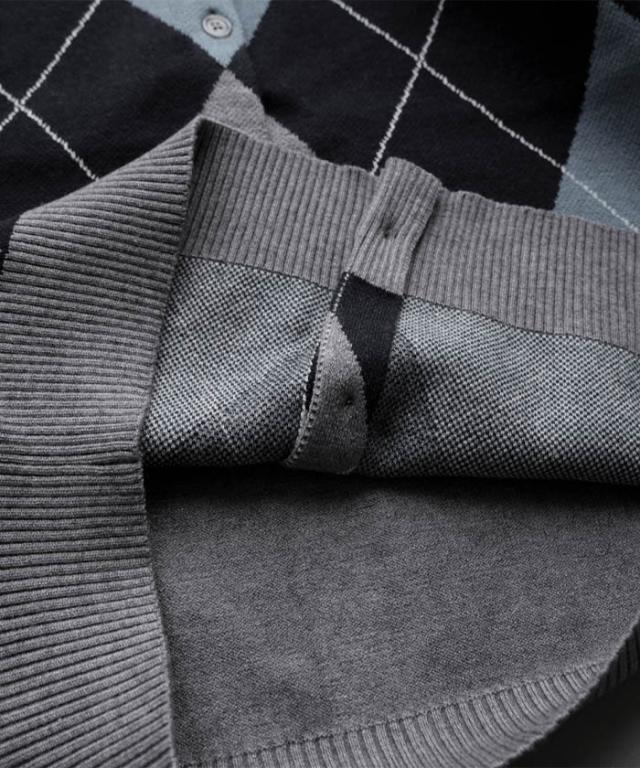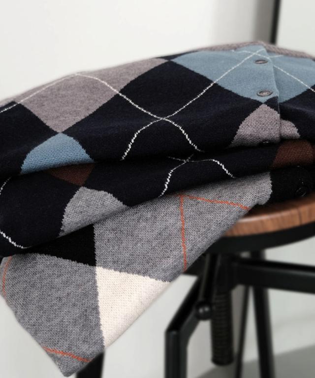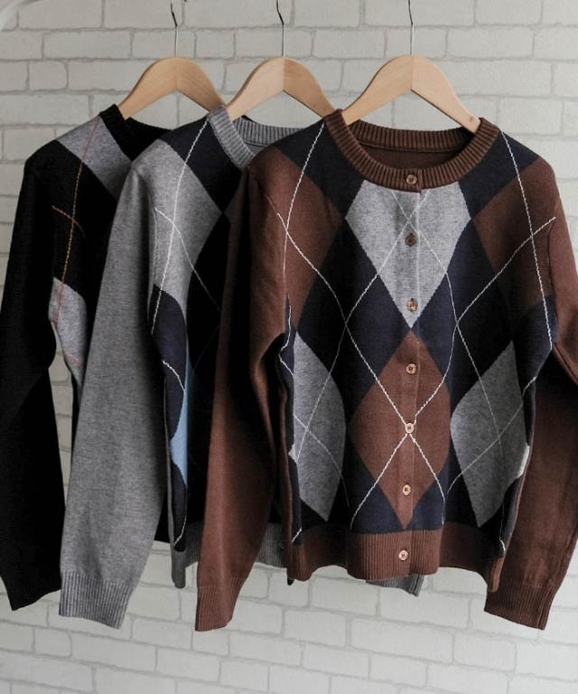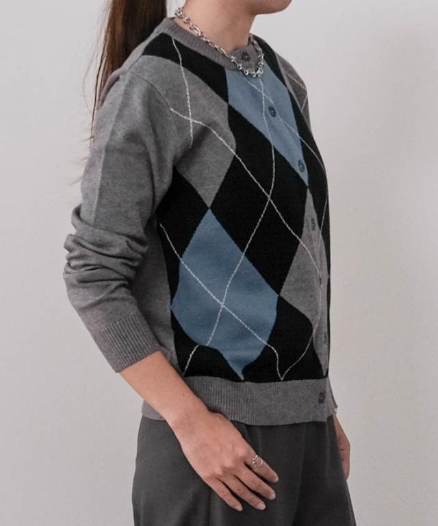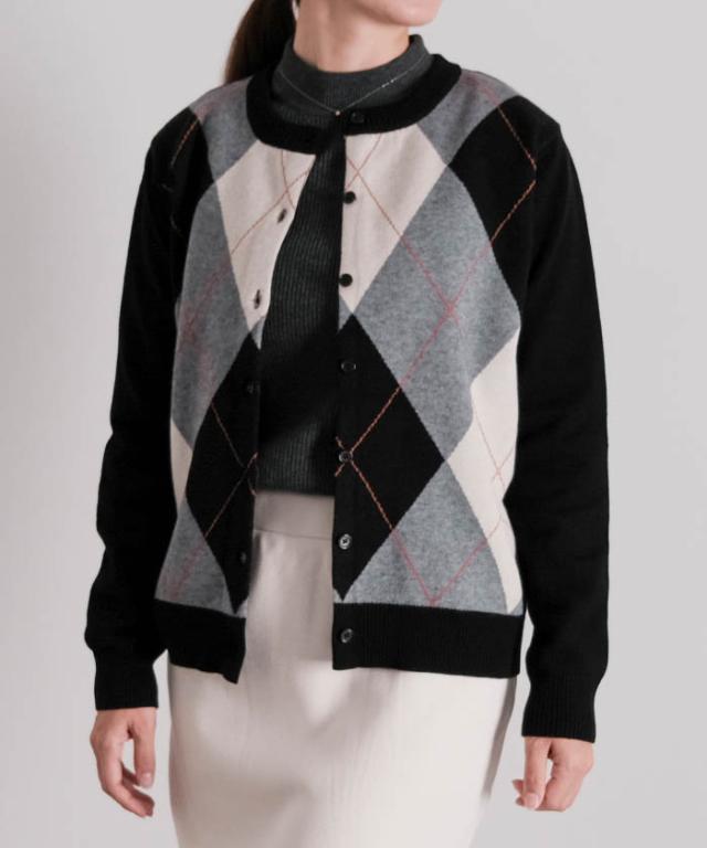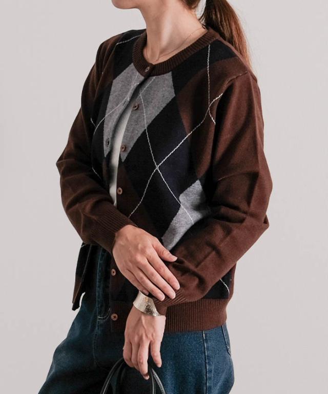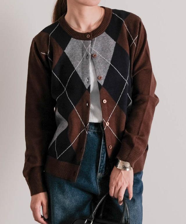 クラシカルな雰囲気漂うアーガイル柄が目を惹くニットカーディガン。