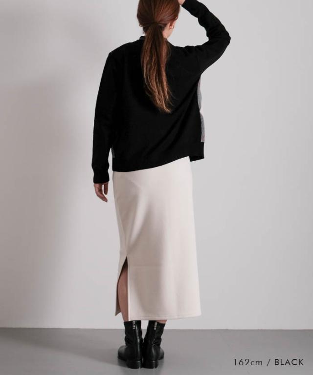 厚すぎない中肉のニット素材なので、アウターの中にもすっきりと着こなせます。