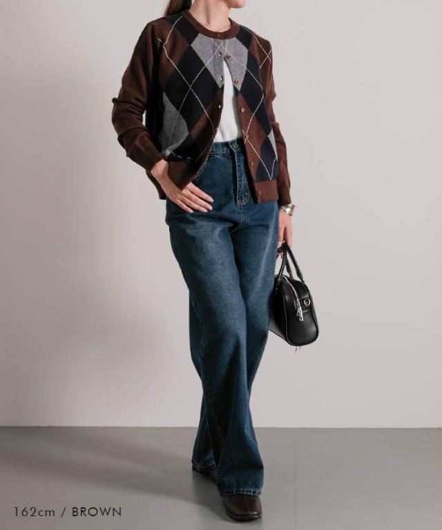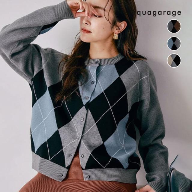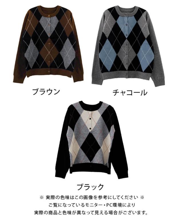 ≪ゆうメール便配送30・代引不可≫ アーガイル柄カーディガン 春 秋 冬 M レディース |アクアガレージ aquagarage