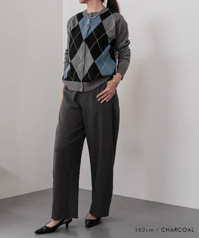 チェックのように見えるアーガイル柄が、いつものシンプルコーデに程よいアクセントをプラス。