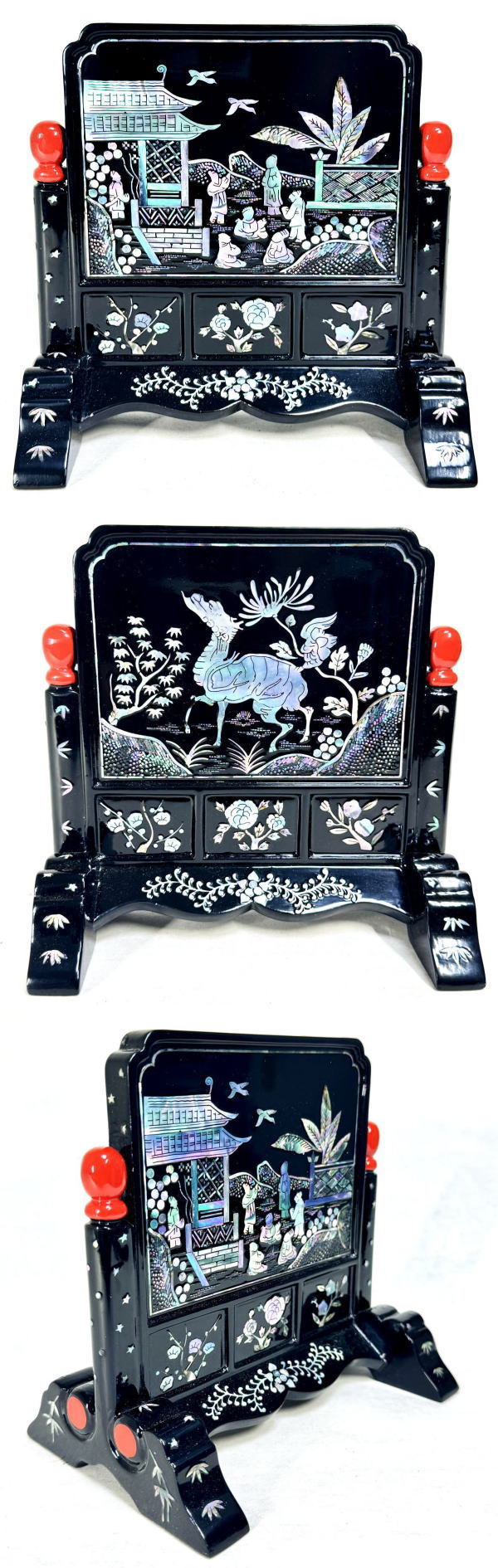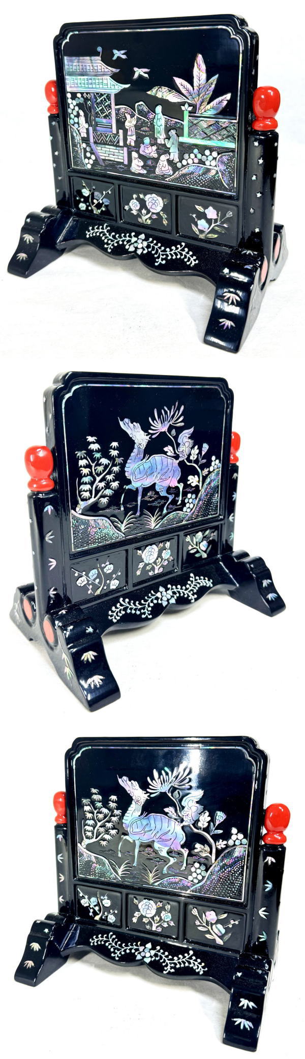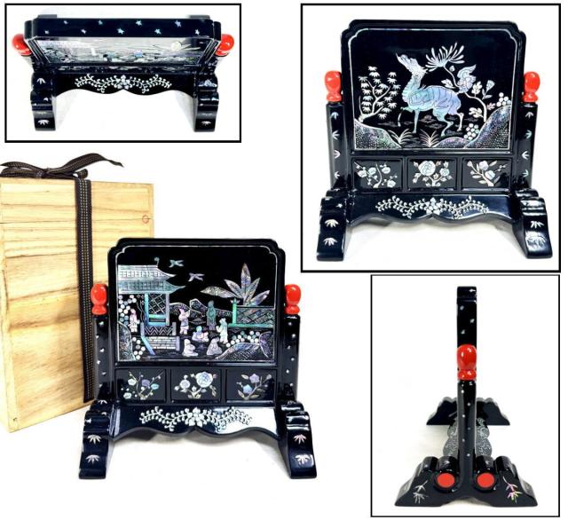 【送料無料】清時代 木製黒漆 青貝螺鈿装飾 山水人物麒麟神獣文 硯屏 衝立 中国 茶道 書道 華道 香道 一点物 時代物 (旧家蔵出し) 威龍彩雲通販