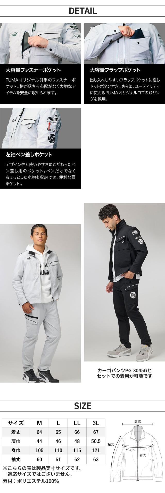 作業ウェア PUMA プーマ PUMA.AT WORK.×ヒロミコラボ ワークジャケット 作業服 メンズ ブルゾン ワークウェア PUMA WORKWEAR ジャケット PG-3041G ワーク マン 作業着 制服 通年作業着 秋冬 かっこいい おしゃれ
