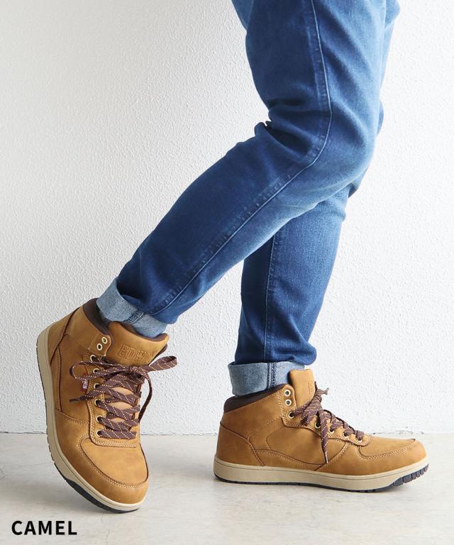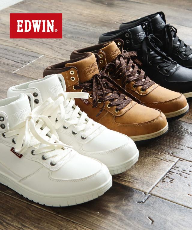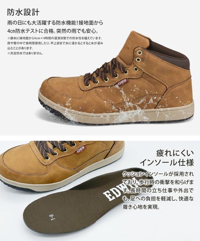 エドウィン スニーカー メンズ 防水 防滑 ミッドカット 履きやすい 疲れにくい おしゃれ カジュアル 大人 男性 通勤 通学 タウンユース 普段履き ミドルカット カジュアルシューズ レインシューズ 紐靴 ブーツ 靴 シューズ 黒 ブラック 白 ホワイト キャメル EDWIN 7974