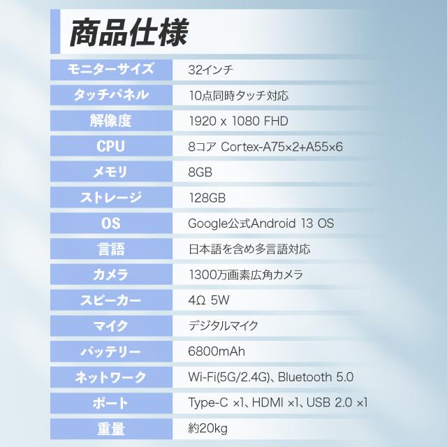 モニター タブレット 10点タッチ タッチパネル 液晶 32インチ 32型 32inch 大画面タブレット モニター タッチ操作対応 カメラ マイク搭載