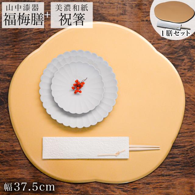 福梅膳・祝い箸 一膳セット プレースマット 金 37.5cm 「伝統保証」 「即日発送対応」 ( あすつく 折敷 ランチョンマット 福梅プレート )