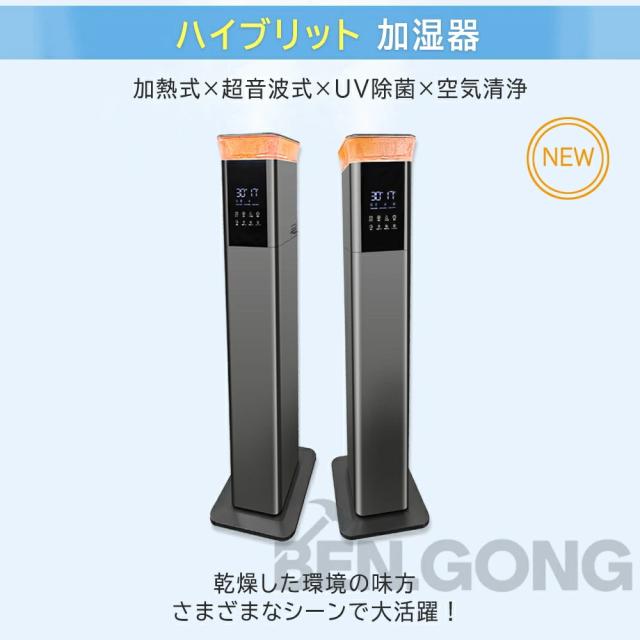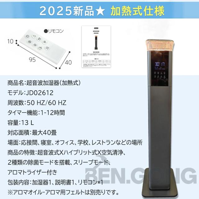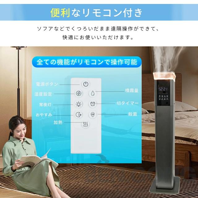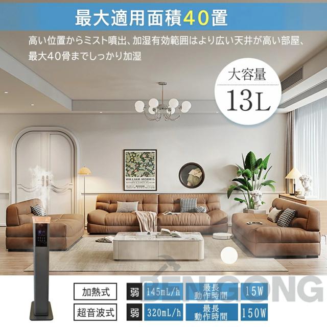 【最新型●加湿/加熱】加湿器 スチーム式 加湿機 加熱式 超音波式 ハイブリッド式 空気清浄 40畳 大容量 13L 大型 タワー型 おしゃれ 除菌 自動湿度調節 上部給水 3段階調節 噴霧量530ML/H リモコン付き 空焚き防止 業務用 寝室 静音 省エネ 人気のアロマ
