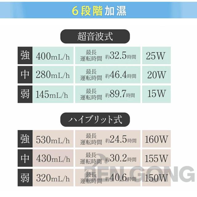 ◆ハイブリッド式:加湿量が多く、不快な蒸し暑さを緩和。清潔なミストでお部屋をクリーンに保ちます。