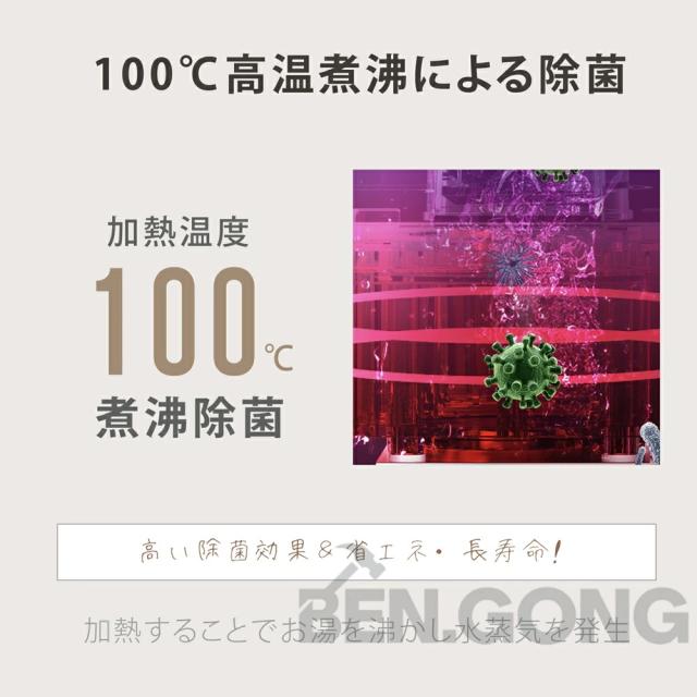 UV除菌機能を本体に内蔵。さらに100℃の高温でタンク内の水を徹底的に除菌します。