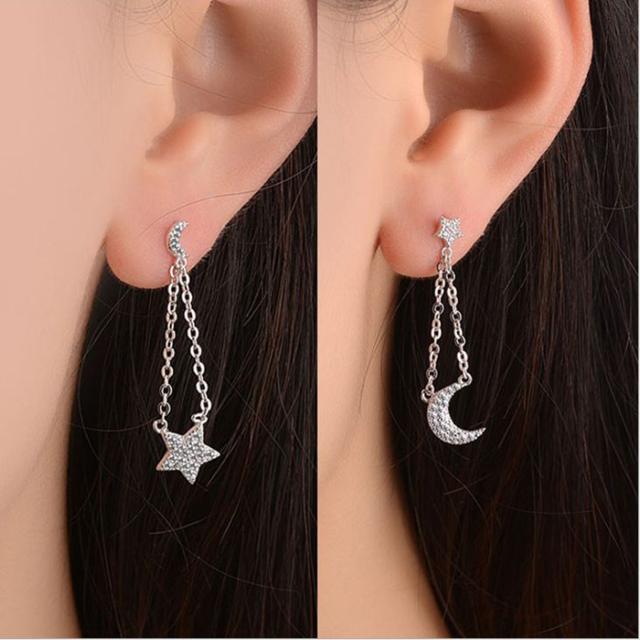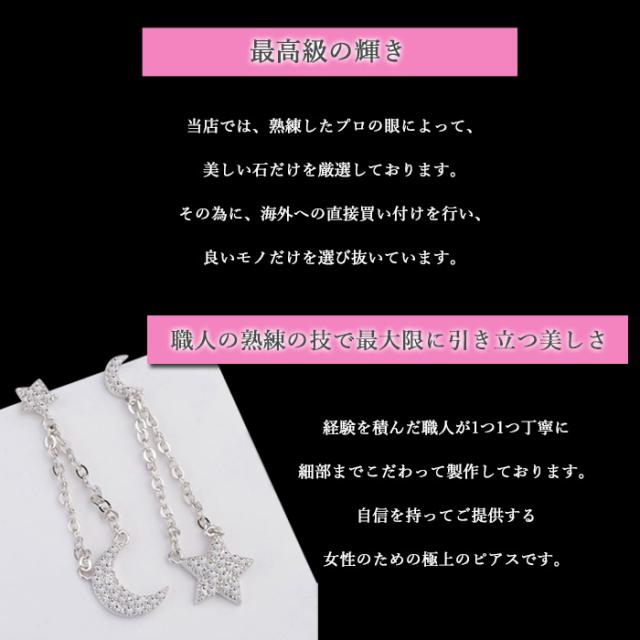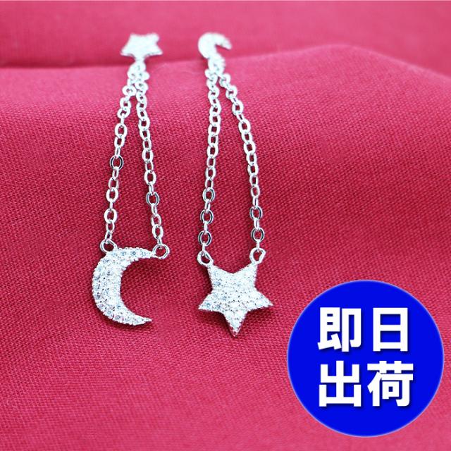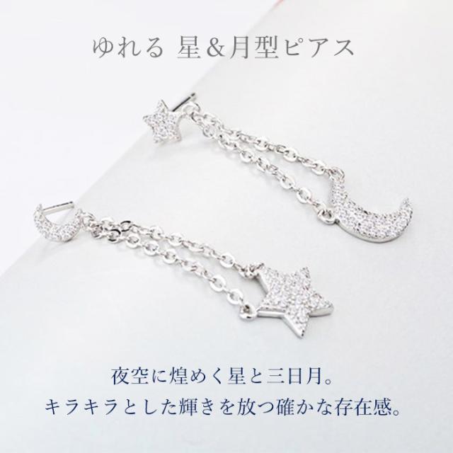 0.275カラット 揺れる 星&月 ピアス/揺れる/スター ムーン/プラチナ仕上げ/シルバー925/アシンメトリー