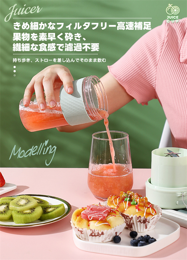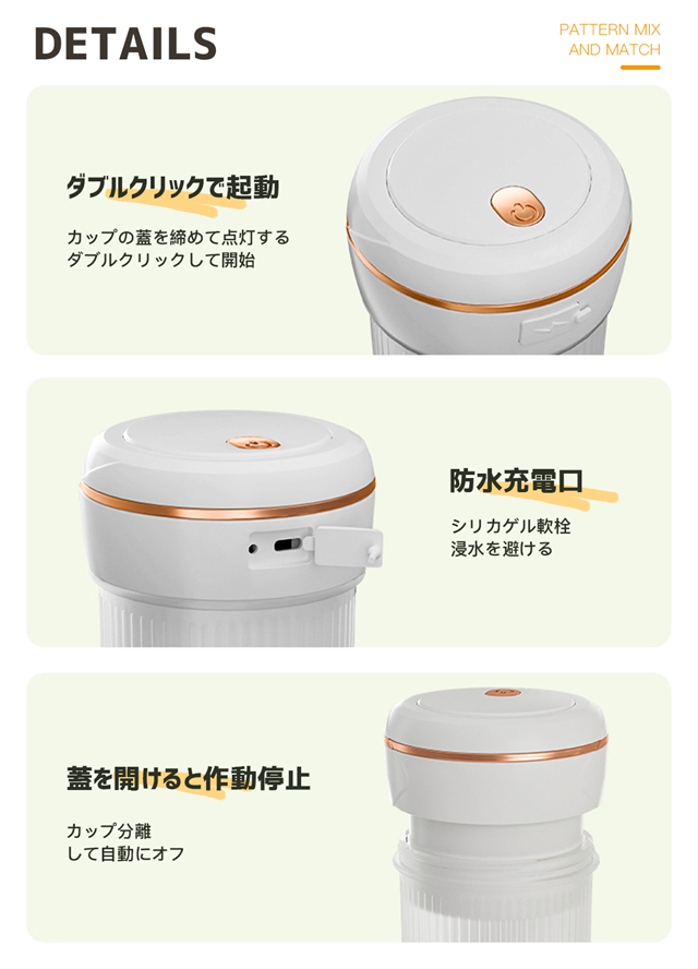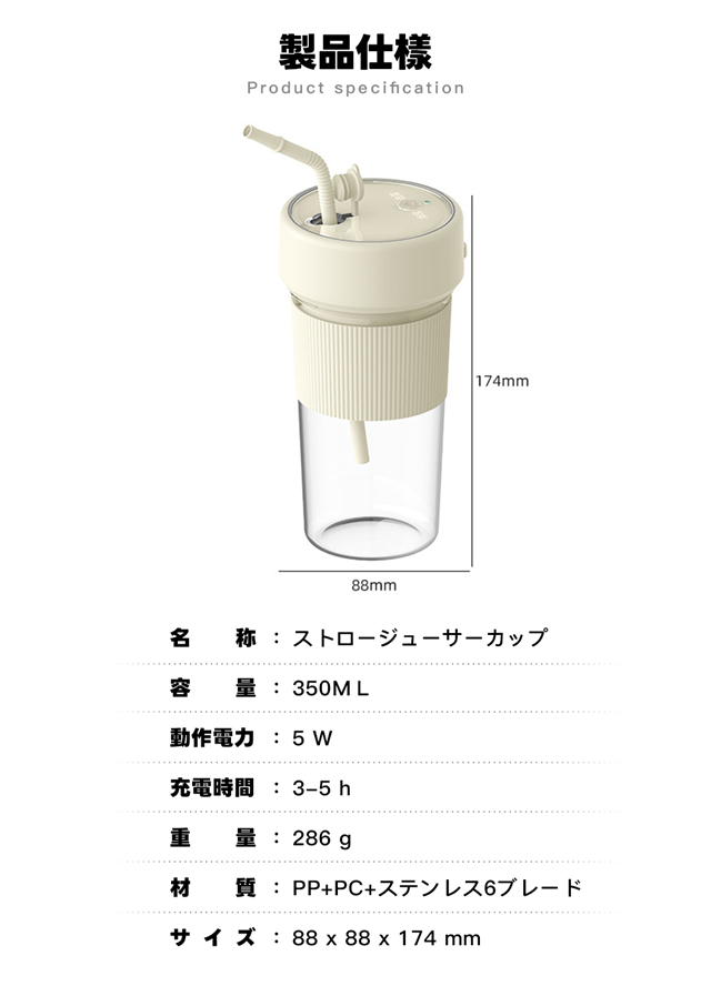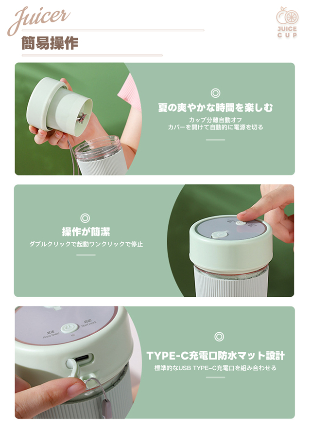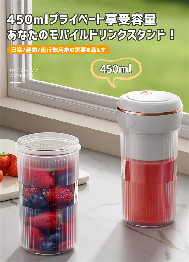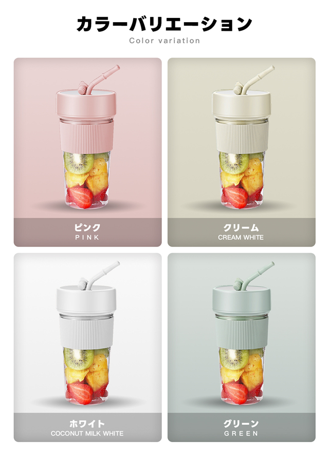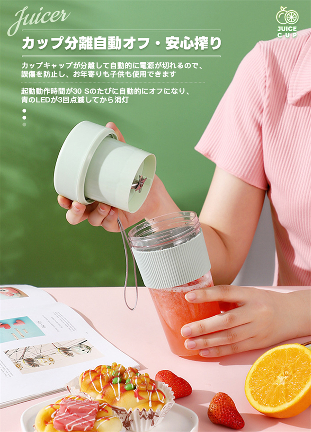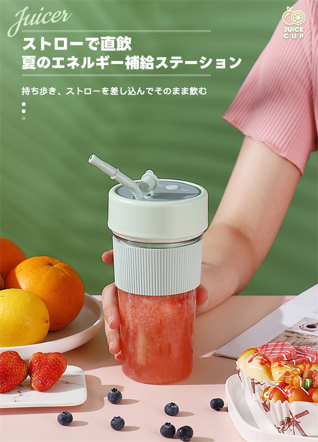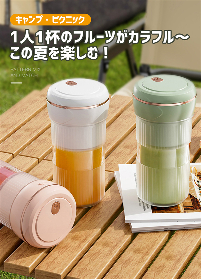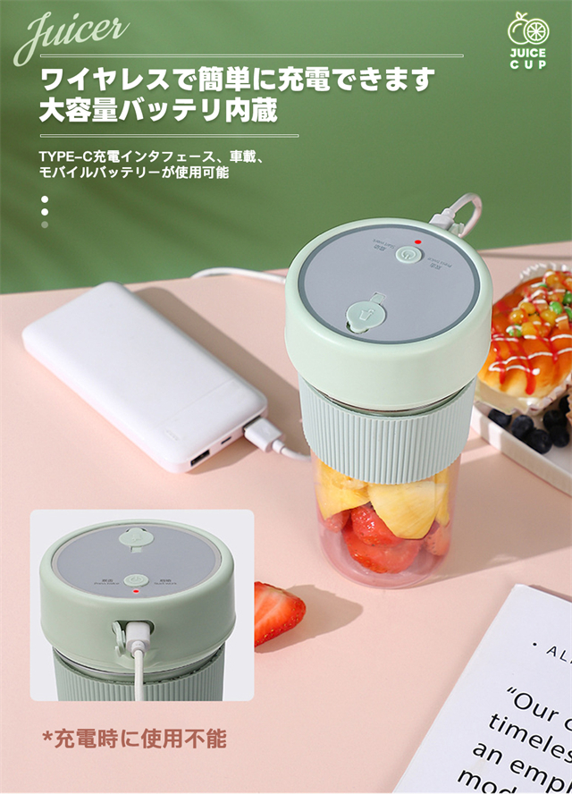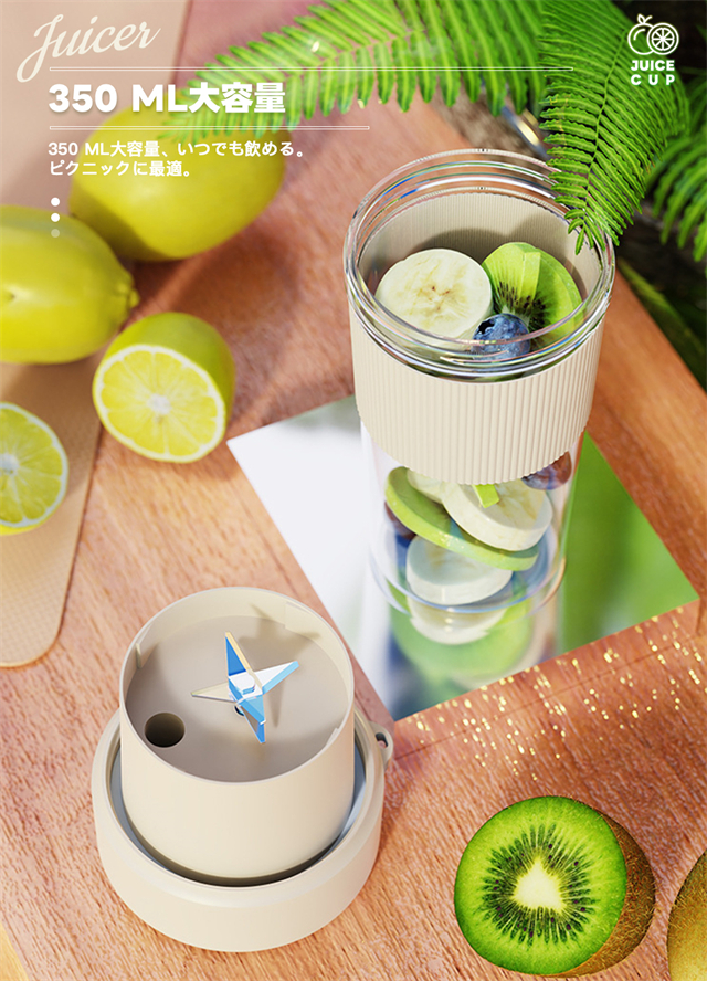 ミキサー 充電式 コンパクト USB充電 350ml コードレス ポータブルミキサー 小型 スムージー ジュース ジューサー ブレンダー 洗える 持ち運び アウトドア オフィス ジム プロテイン 軽量 携帯便利 野菜 果物 一台多役