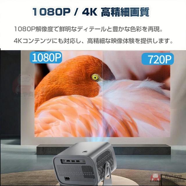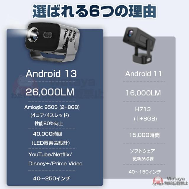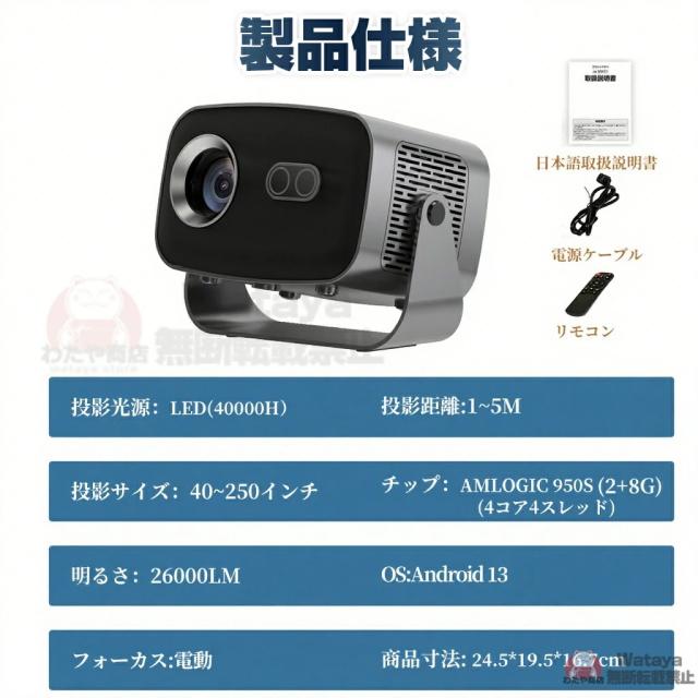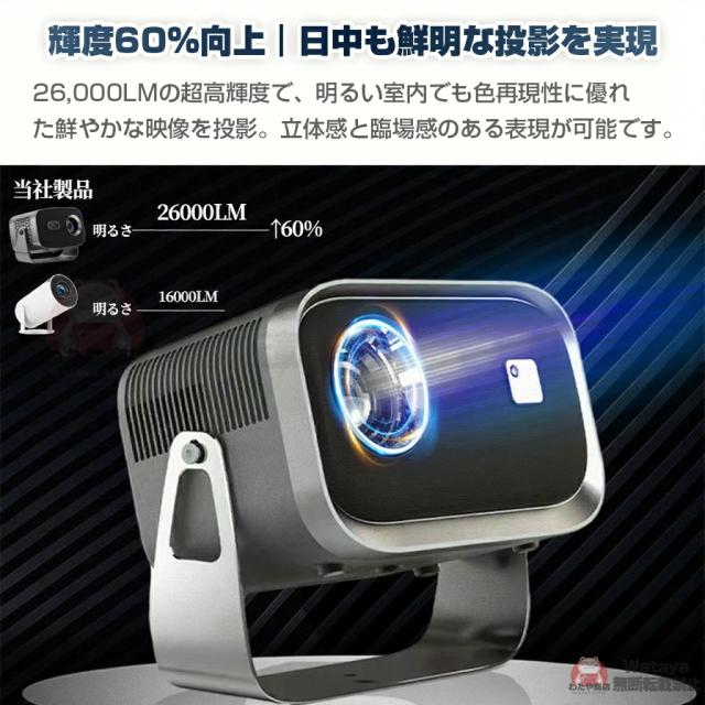 プロジェクター 小型 Android13搭載 スマホミラーリング対応 26000LMの劇場級画質|Netflix/YouTube直接視聴可|自動台形補正&電動フォーカス|Wi-Fi6/Bluetooth|超静音設計|ホームシアターセット(天井取付金具+HDMIケーブル+リモコン付)