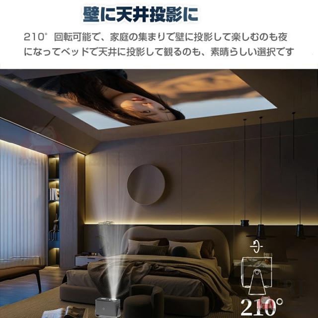 プロジェクターには210°回転可能なスタンドが付属し、自動台形補正機能により、真の自由な投影を実現します!プロジェクターは取り付け不要で、設置場所に制限がなく、どの角度から見ても、一度のクリックで最適な画面に補正と調整できます。
