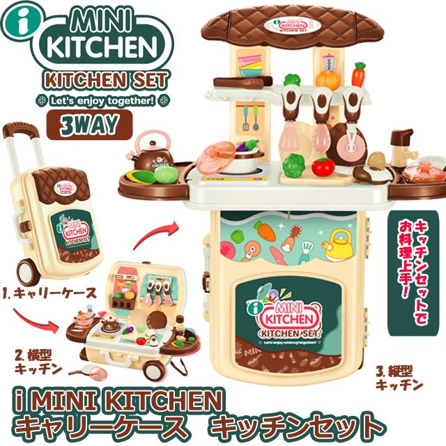 i MINI KITCHEN キャリーケース キッチンセット 女の子 玩具 おもちゃ おままごと なりきりあそび 台所セット 3WAY トイバッグ アイミニキッチン STマーク認証