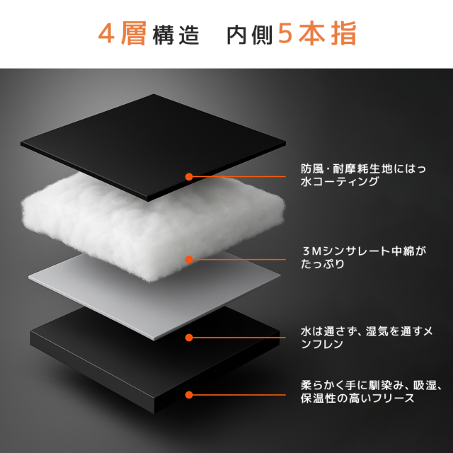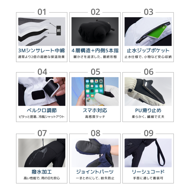 防寒手袋 ST02高機能中綿でしっかり保温!3Mシンサレート素材で軽くて暖かく、冷たい外気を遮断。