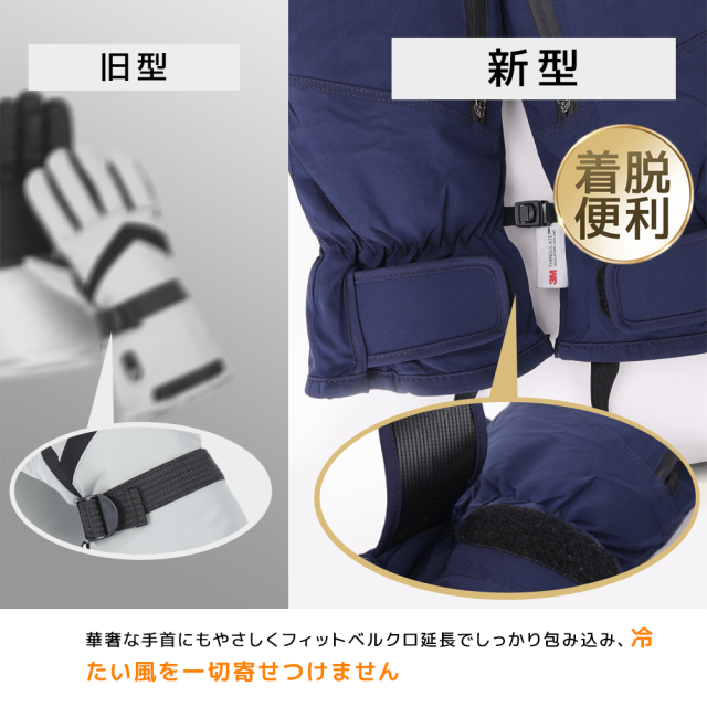 手首ベルクロで冷気をシャットアウトし、快適な着用感をキープ。