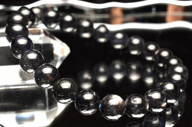 | 特徴・意味 | 人気高いスター効果が確認できるタイプです。 濃く深い藍色に浮かぶ金属のようなシルバーシラーがシックでかっこいい! まるで夜空に浮かぶ星のような輝きに目を奪われます。 また、太陽下など光を翳すと多色性を確認できる珠もあり、透明感も確認できます。 キラキラと輝くスター効果が確認できるスターアイオライトです。 アイオライトは青みを帯びたすみれ色で、サファイアに似ていることからウォーターサファイアとも呼ばれています。見る角度によって色が青から透明に変わる特性を持っており、その昔バイキングがレンズ代わりに太陽にかざして、最も色が濃く見える方向に船の進路を決め安全な航海をしていました。そのことからアイオライトは持つ人を正しい方向へ導いてくれる羅針盤の力を持つと言われています。 |