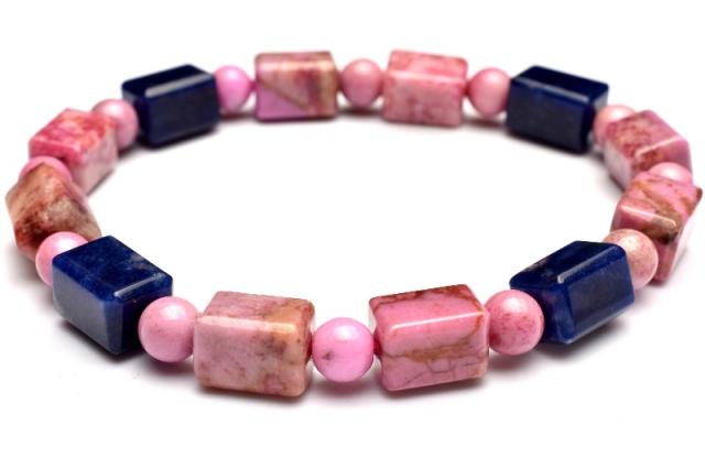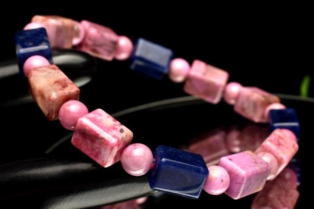 【1点物】5A級☆希少高発色 コバルトドロマイト(コバルトカルサイト)&ソーダライト 9-10x6.5(丸玉6)mm チューブカット ブレスレット _MC879