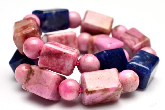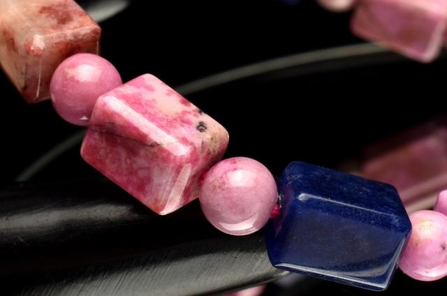 | 材質 | コバルトドロマイト(コバルトカルサイト)&ソーダライト 9-10x6.5(丸玉6)mm 産地:コンゴ共和国他 |