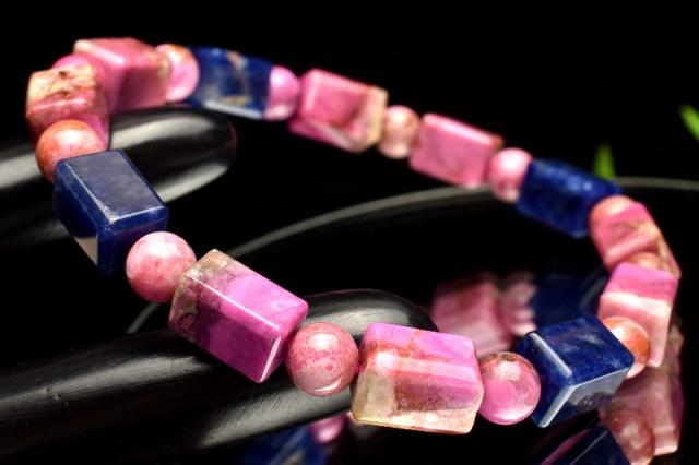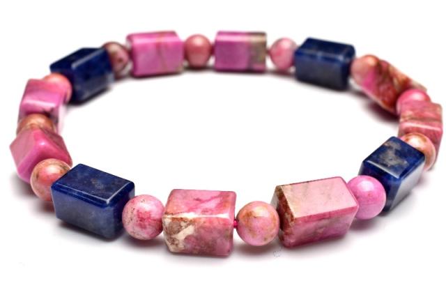 【1点物】5A級☆希少高発色 コバルトドロマイト(コバルトカルサイト)&ソーダライト 9-10x6.5(丸玉6)mm チューブカット ブレスレット _MC880
