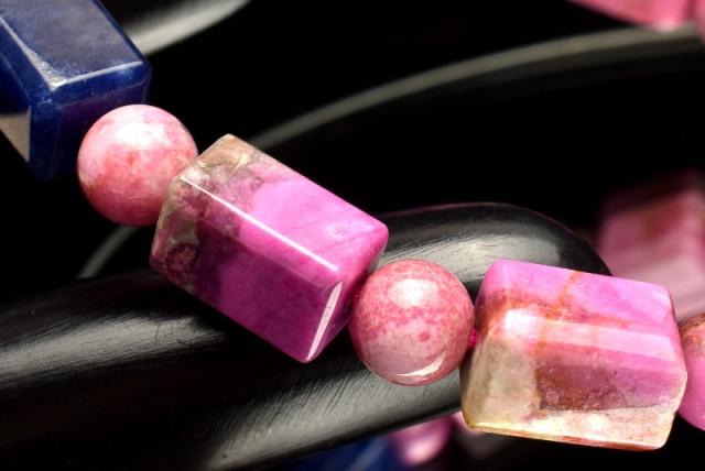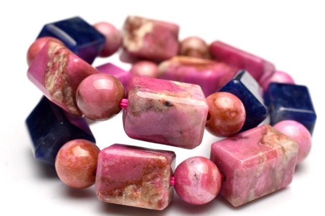 | 材質 | コバルトドロマイト(コバルトカルサイト)&ソーダライト 9-10x6.5(丸玉6)mm 産地:コンゴ共和国他 |