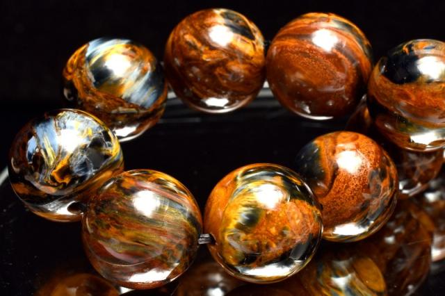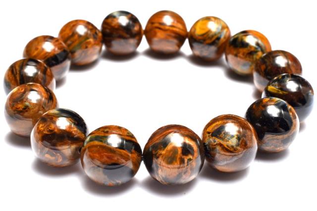 | 特徴・意味 | 鮮やかな茶色のマーブル模様がとっても美しいです。 今の季節にもぴったりな紅葉カラーで落ち着いた印象です。 ピーターサイトは多くのコレクター様にも愛される石。 シャトヤンシー効果もありますのでその美しさをぜひご堪能くださいませ。 1962年、南アフリカのナミビアで、シッド・ピータースによって発見された新しい石。 タイガーアイやブルータイガーアイが地殻変動で崩れた後、再度石英で固まったものです。 一般的にはタイガーアイ系の茶褐色が多いですが、ブルータイガーの青系もあり、茶と青の混じったものもあります。 独特の粉々になった模様が嵐のようだというので、テンペストストーン(嵐の石)とも呼ばれます。 タイガーアイは、石英(せきえい)の中に、青い石綿が入ったもので、めのうの仲間です。 これが地熱で温まり、黄色になったのが、タイガーアイです。 ブルータイガーアイの一筋の光が、一度崩れたことによって、あちこちを向いて輝いていて、神秘的な感じになっています。 渋くて不思議なものが好きな方には、たまらないかも。 どこかのブランド物の織物のようです。 地殻や自然の激しい動きにさらされた石は、困難を切り抜ける知恵を持っています。 ピーターサイトは、めちゃくちゃになった物事を、再度作り上げ、昇華していこうとする人に、援助を惜しまない石です。 ブルータイガーアイよりも、さらに強いエネルギーを求めたい人におすすめ。 |