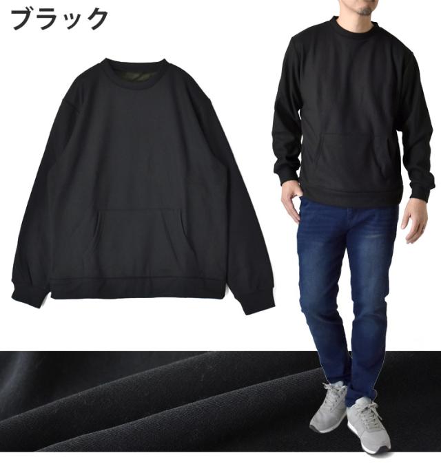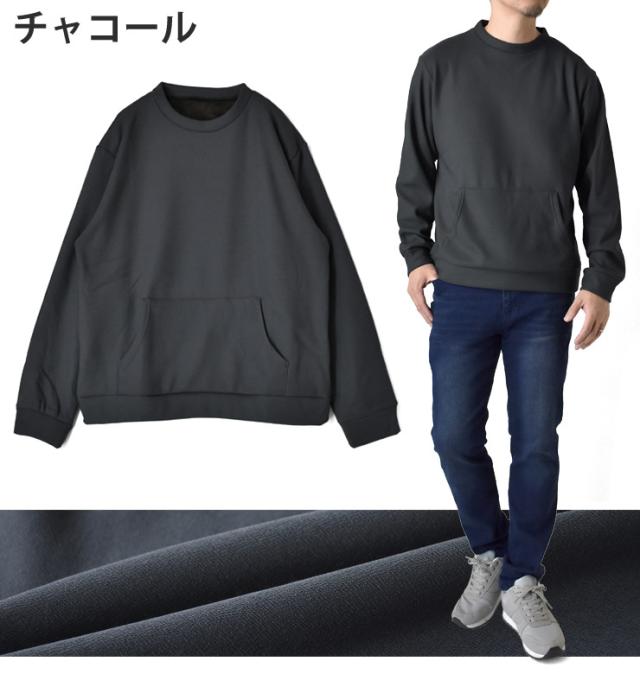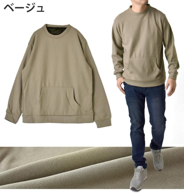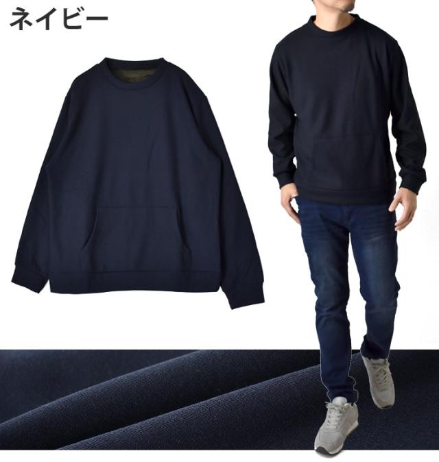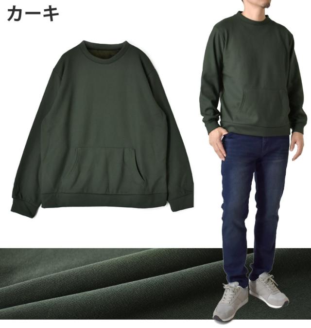 クルーネック メンズ ジョーゼット スウェットトレーナー 裏ボア ストレッチ カンガルーポケット 暖 冬 部屋着【D1C】【送料無料】【ゆうパケット】【メンズ】 冬新作