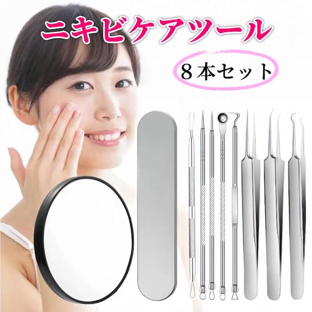 ニキビケアツール ニキビ取り 8本セット 拡大鏡付き 【ハレゾラTBP公式店】 ピンセット 角栓 角栓取り 毛抜き ニキビ 精密 いちご鼻 黒ずみ 毛穴ケア 先端0.01mm 細い 毛穴ケア専用ツール ステンレス製 毛穴ケア 黒ずみ取り 収納ケース付き