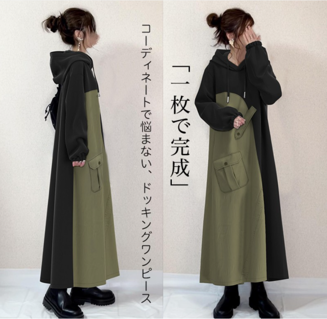 パーカーワンピースロング秋冬 パーカーワンピース40代 Aライン マキシワンピース 長袖 フードパーカーワンピース冬 おしゃれ シンプル キレイめ 50代