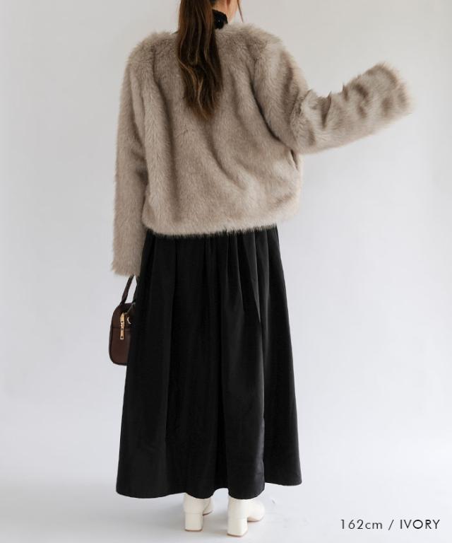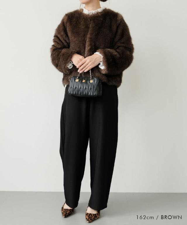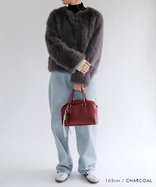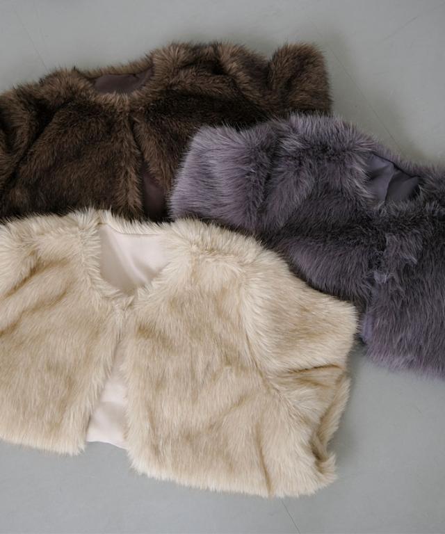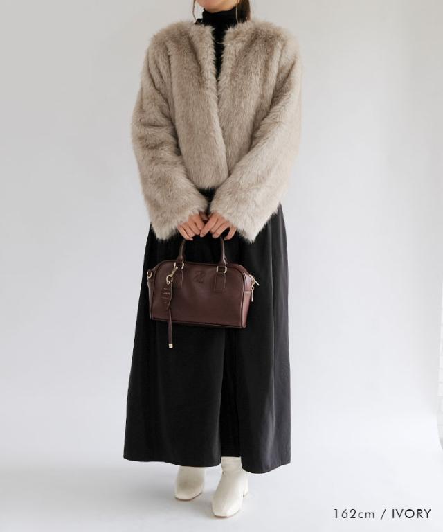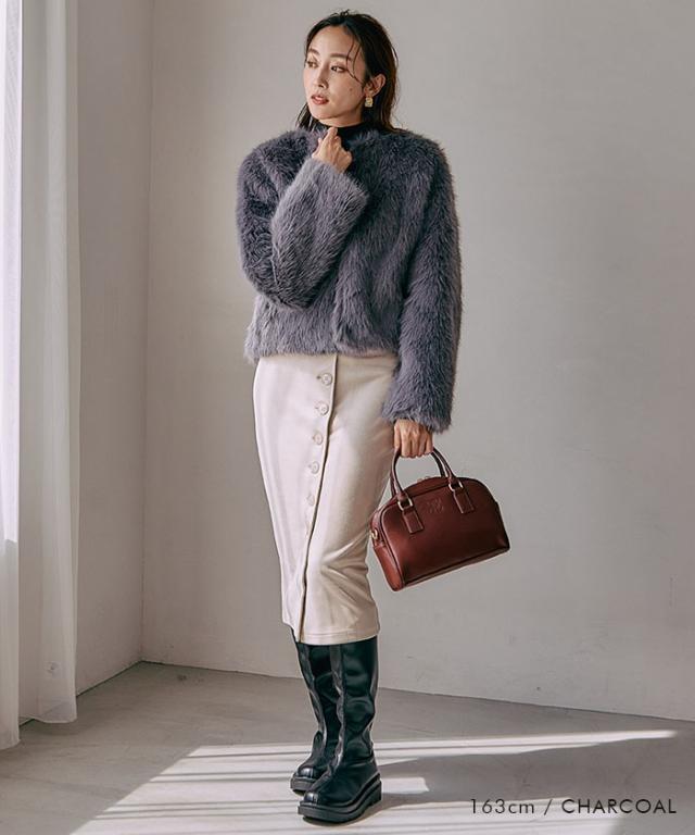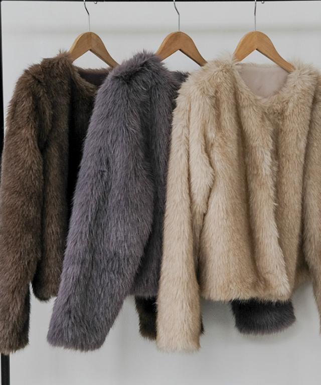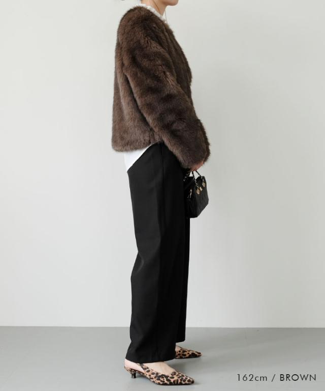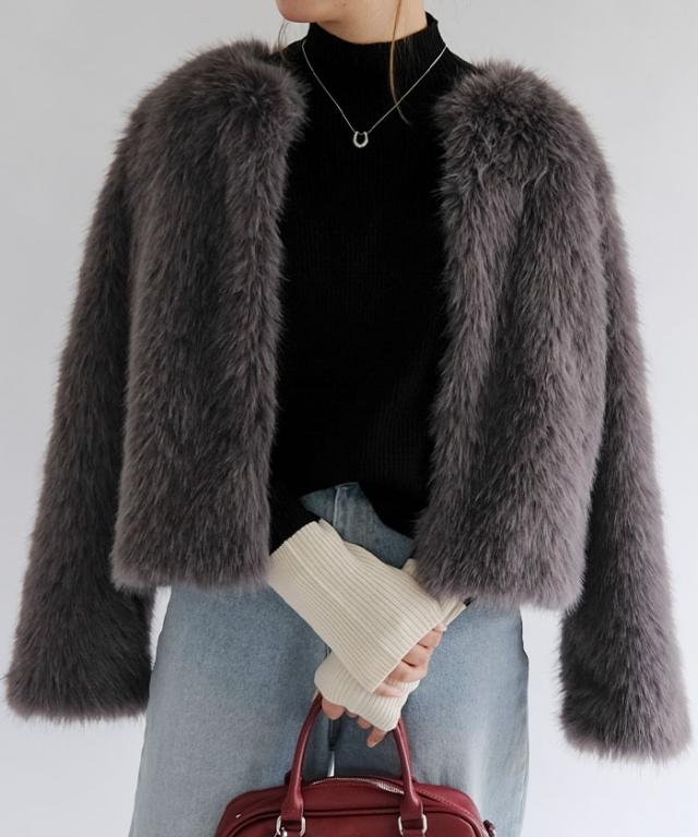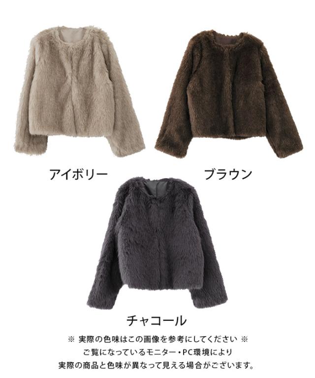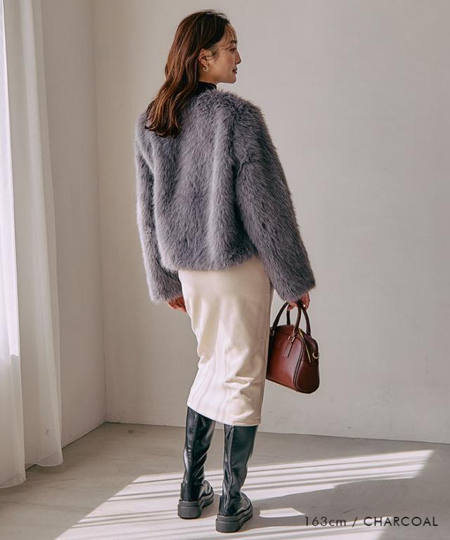 ふわふわとした質感が魅力のノーカラーファージャケット。