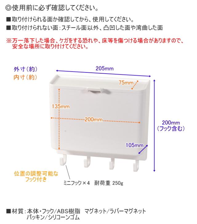外寸:(約)幅205×奥行105×高さ200mm(フック含む) 内寸:(約)幅200×奥行75×高さ135mm |