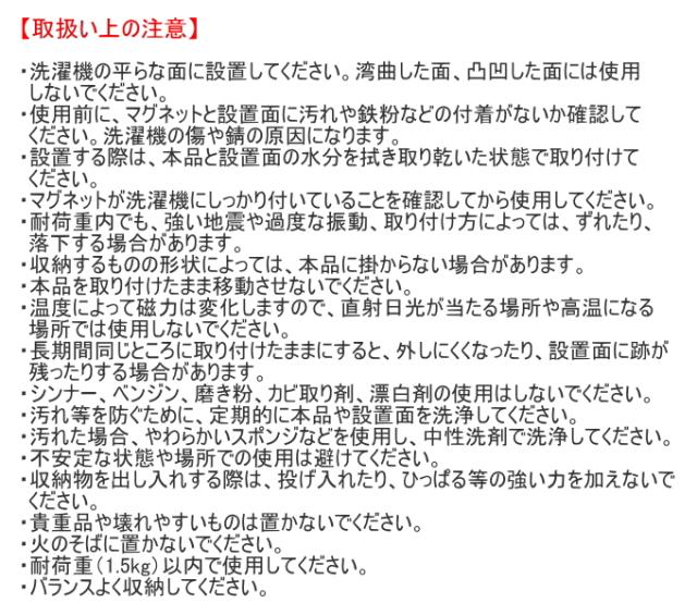 洗濯機で叶える、省スペース&快適ライフ! マグネットで洗濯機に設置できる洗濯洗剤ボールストッカー。 洗濯洗剤ボールをスッキリ収納。 洗濯ネット・洗濯バサミも収納できます。 ■その他の磁石でつけるシリーズはこちら↓ 磁石でつけるシリーズ ■その他のお風呂小物はこちら↓ お風呂用小物一覧 |