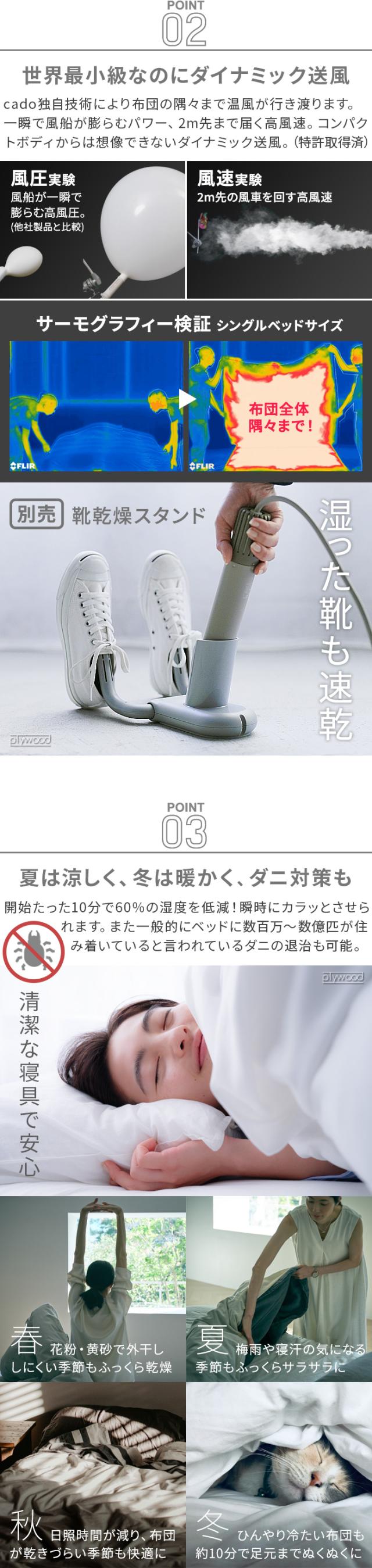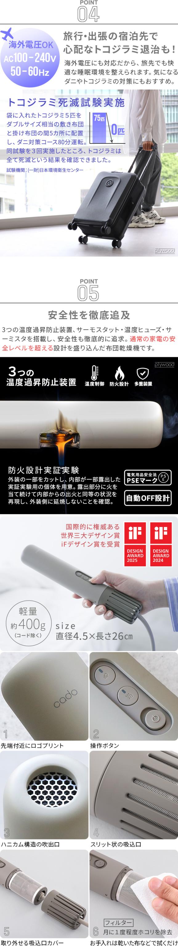 【選べる特典】布団乾燥機 コンパクト ダニ 小型 カドー ふとん乾燥機 フェーン ライト cado FOEHN LITE ダニ退治 静音 省エネ あたため 乾燥 海外電圧 240v ポータブル ミニ スティック 送風 シングル ダブル 旅行 出張 トコジラミ ダニ対策 送料無料 P10倍