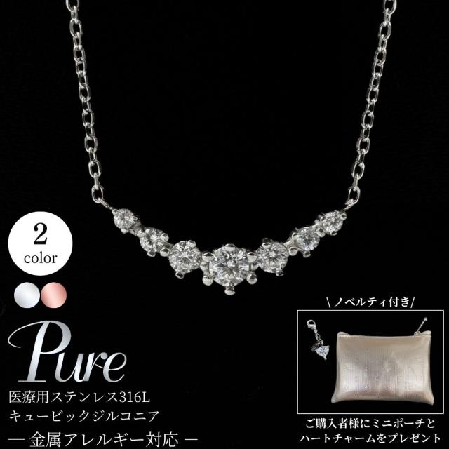 アレルギーを誘発しにくい、敏感肌に優しい最高位の医療用ステンレス316Lに、AAAクラスのキュービックジルコニアをあしらったバーネックレス。