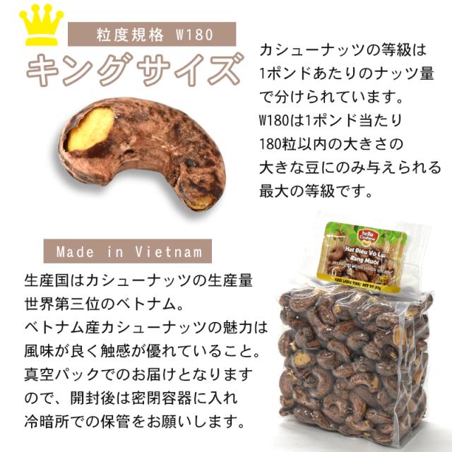 皮付き カシューナッツ 500g 塩味 うすしお 大粒 W180 キングサイズ ロースト ベトナム産 おやつ おつまみ 有塩 高品質 送料無料 税率8%