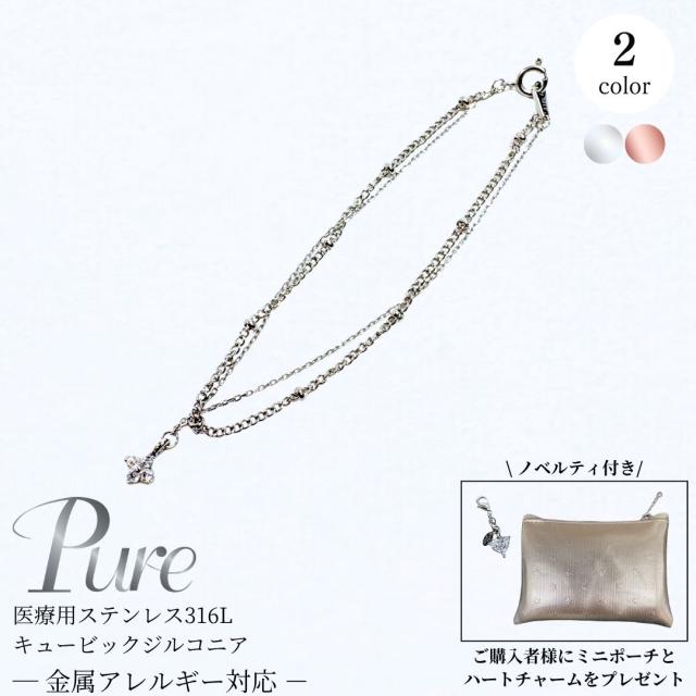 アレルギーを誘発しにくい、敏感肌に優しい最高位の医療用ステンレス316Lに、AAAクラスのキュービックジルコニアをあしらったチャームブレスレット。
