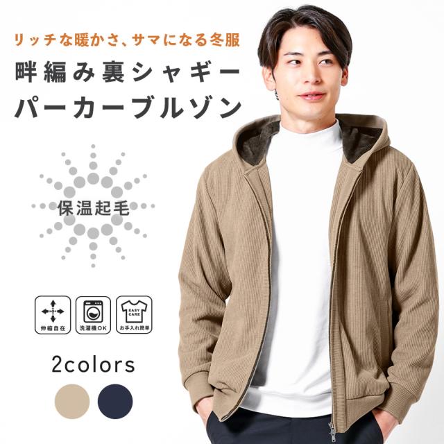 ニット パーカー ブルゾン メンズ 裏シャギー ストレッチ 伸縮 羽織 アウター あたたかい 起毛 秋 冬 ダブルジップ フード カジュアル きれいめ あったかい らくちん アーバンスクエア 65361