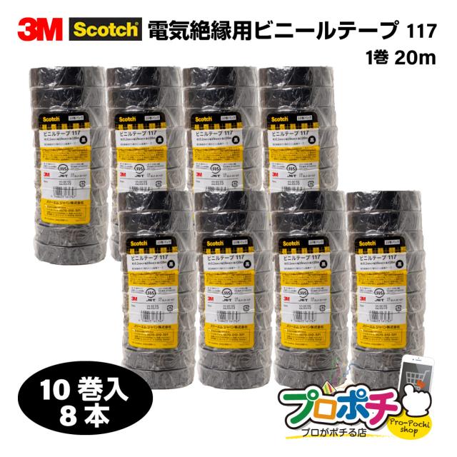 即配 117 BLA 20 10巻入×8本 スコッチ 電気絶縁用ビニールテープ 117 厚さ0.2mm×幅19mm×長さ20m スリーエム 3M 絶縁テープ