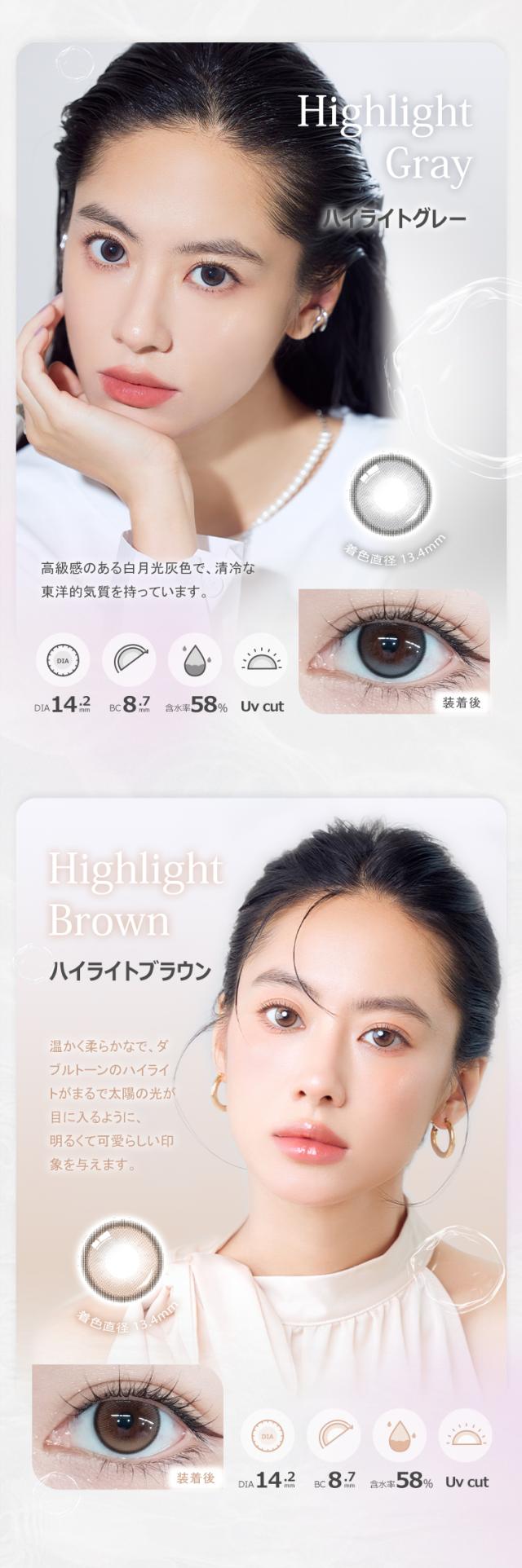 FOMOMY Highlight フォモミ ハイライト 10枚入 ワンデー 水光 ちゅるん 細フチ グレー ブルー ベージュカラー コンタクト 度あり 度なし 韓国 カラコン カラーコンタクトレンズ カラコン 使い捨て コンタクトレンズ 1day カラコン度付き