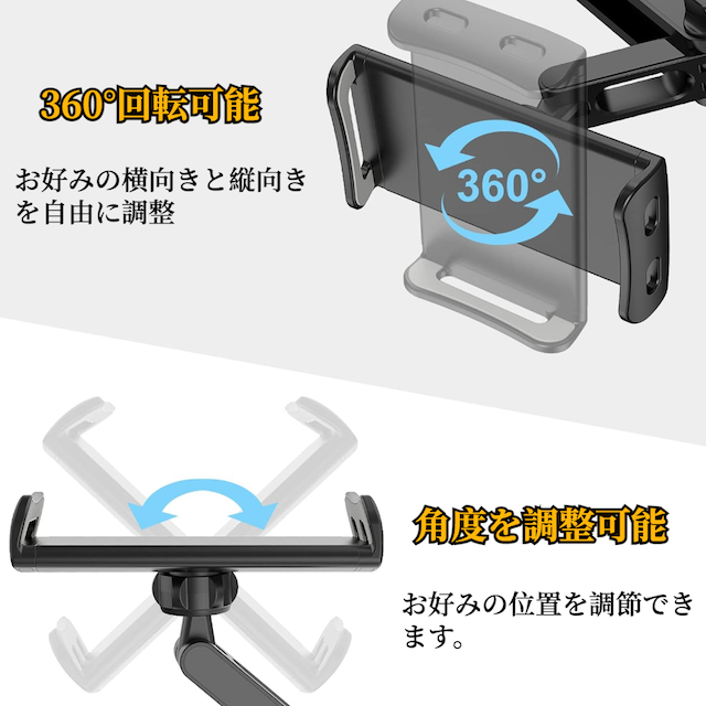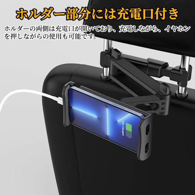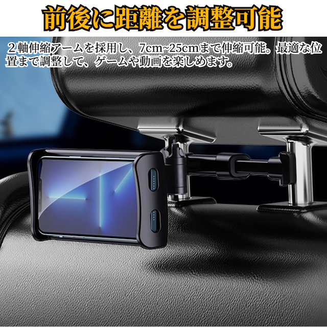 タブレット スマホ 車載ホルダー 【ハレゾラTBP公式店】 後部座席 スマホ ヘッドレスト ホルダー 伸縮アームスタンド 取付範囲約12cm〜20cm 折り畳み式 360度回転 充電可能ホール付 簡単取付 転落防止 防振 タブレット&スマホ兼用 ●
