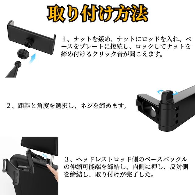 | 商品内容 | タブレット スマホ 後部座席車載用ホルダーx1 |