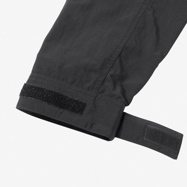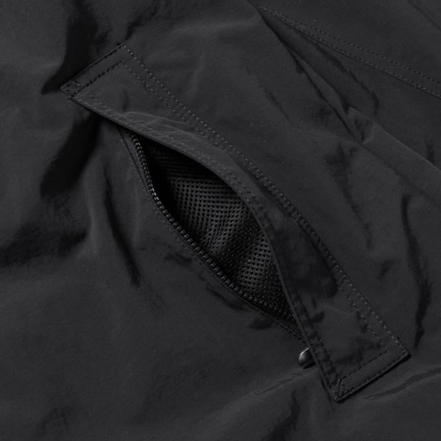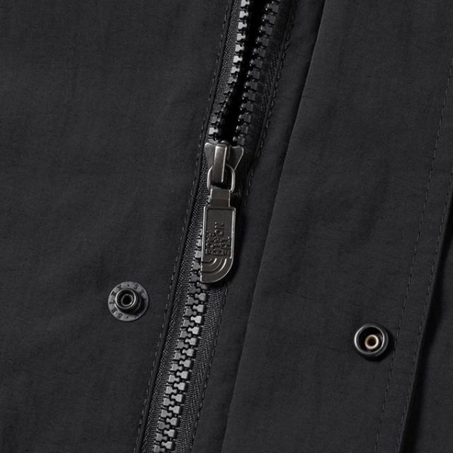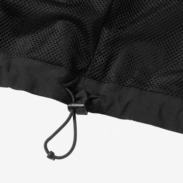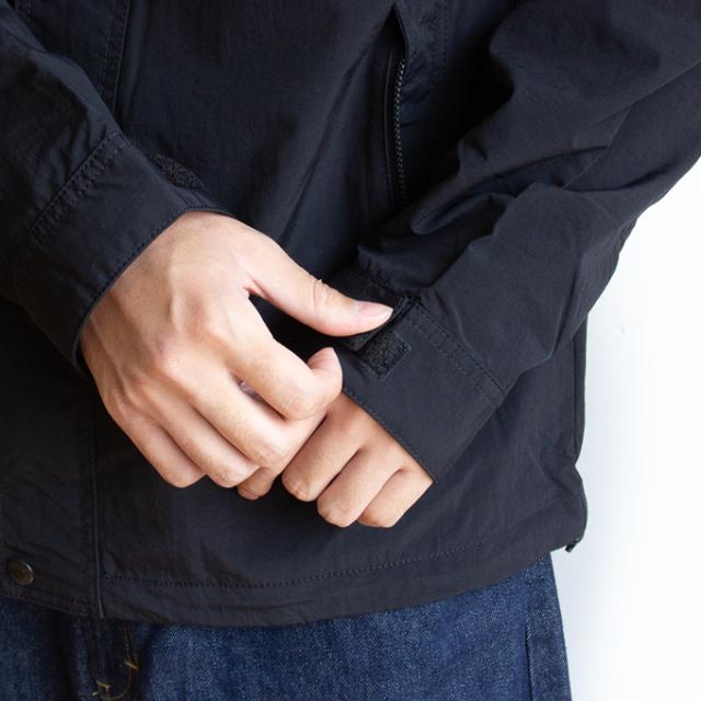 表地はコットンライクな表情のタスランナイロンを使用。フッ素化合物を含まないはっ水剤を使用したはっ水加工を施しており、多少の雨や汚れに対応します。裏地は肌離れのよいポリエステルメッシュ。大容量のマチ付きポケットは、中身が落ちにくいように面ファスナー式のフラップ付き。右胸のハーフドーム型ファスナーポケットは、貴重品の収納に便利です。背面にも大容量のマチ付きポケットを配置。襟にフードを収納できるビルトインフード仕様です。 |