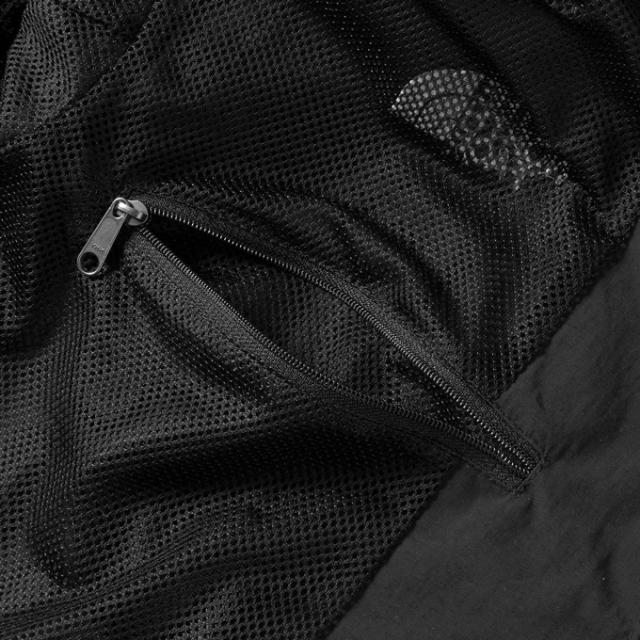 表地にはクラシカルでやわらかな風合いのタスランナイロンを使用。裏地は肌離れのよいポリエステルメッシュで、生地が汗で張りつくのを抑えます。裾は両脇のアジャスターで簡単に調節可能。フロントフラップはドットボタン仕様です。