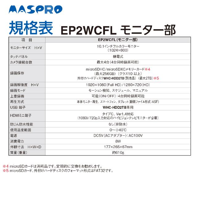 期間限定10%OFFセール 即配 防犯カメラセット EP2WCFL10インチモニター&ワイヤレスHDカメラセット 防犯カメラ ワイヤレス 屋外 工事不要家庭用 フルハイビジョン 簡単設置 防じん防水性能IP66 マスプロ電工MASPRO